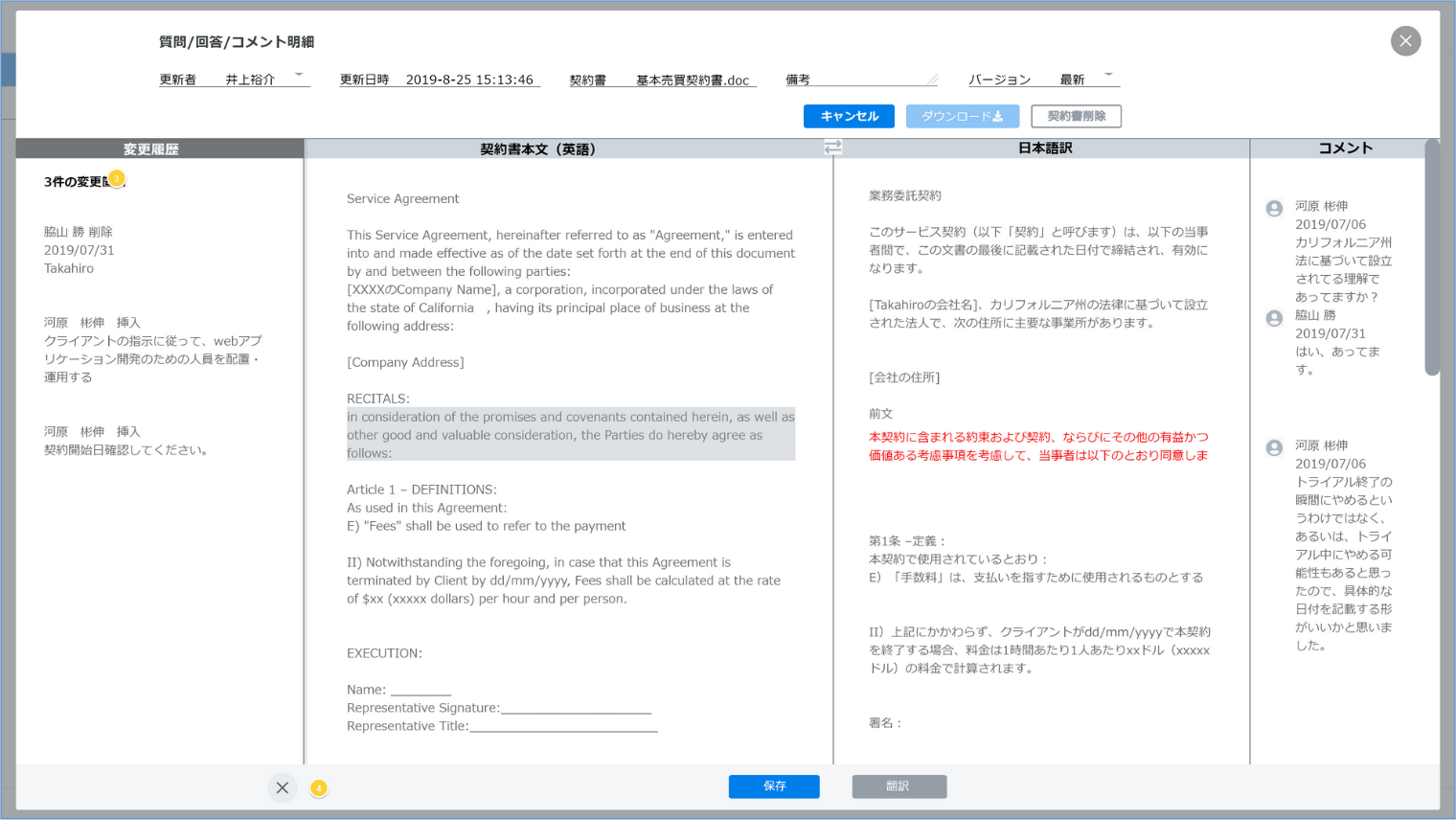 複雑な契約書の変更履歴が可視化
