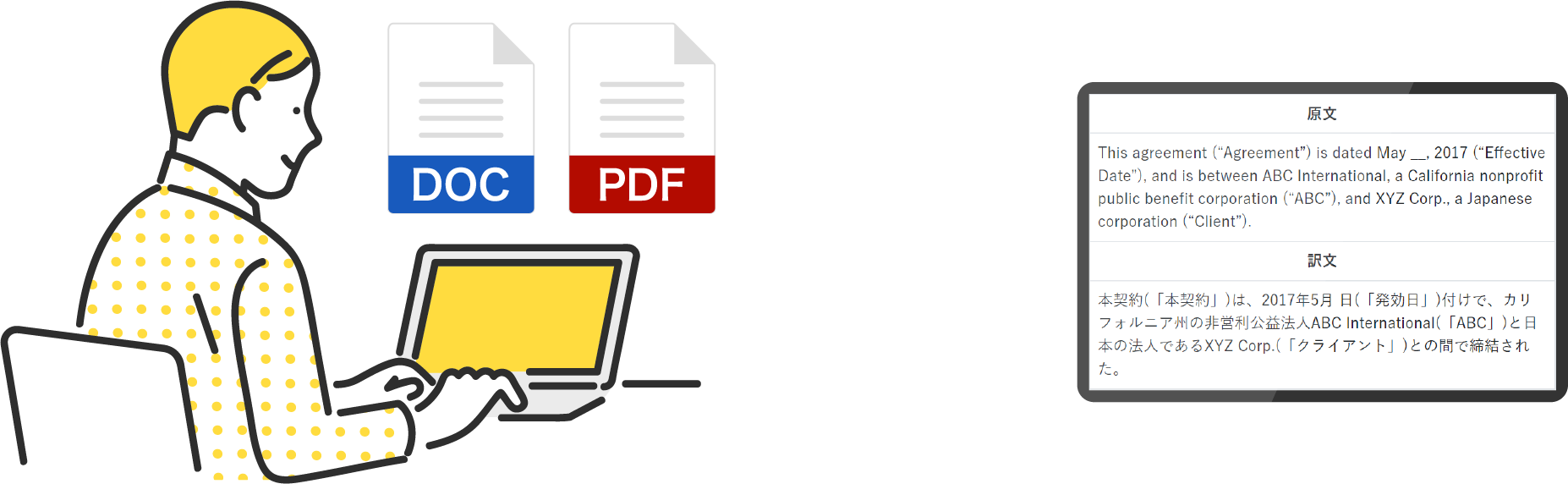 契約書1枚(A4、1ページあたり約300単語)なら約600円!コストを10分の1に抑えます。